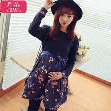 孕妇装春装2017韩版休闲时尚孕妇装碎花拼接孕妇连衣裙长袖上衣女