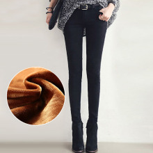 秋冬女装黑色韩版显瘦加绒牛仔裤女长裤小脚裤韩版修身铅笔裤