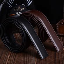 男士皮带身真皮自动扣腰带二层牛皮无扣头光面软面商务休闲黑裤带