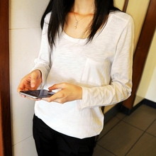 韩国东大门代购2017春装新款女装宽松长袖竹节棉v领t恤纯棉打底衫