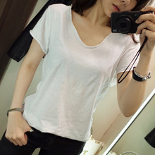 韩国东大门代购t恤女款短袖宽松2017夏装竹节棉v领女士纯棉打底衫