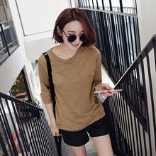 韩国东大门代购2017夏装新款韩版宽松大码打底衫七分袖t恤女纯棉T