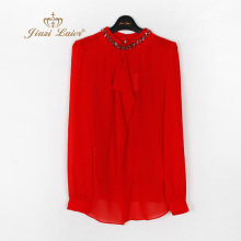 珈姿·莱尔衬衫女长袖2017夏装新款雪纺衫宽松职业装气质立领衬衣