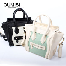 欧米斯2017新款拼接手提包笑脸包囧包黑白撞色女包大中小号包邮HB