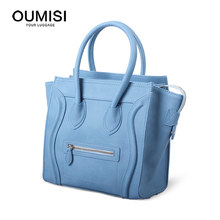 欧米斯2017春新款欧美蓝色撞色同款中号笑脸包手提包女包单肩囧包