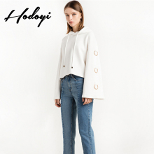 hodoyi2017春季女装欧美时尚宽松金属圆环运动喇叭袖白色连帽卫衣
