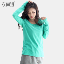 衣尚道 2016春季女装新款 织花长袖T恤女 大码弹力V领打底衫显瘦