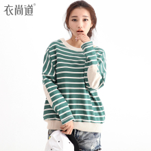 衣尚道春秋女装条纹套头卫衣女式圆领毛圈大码宽松加厚外套女