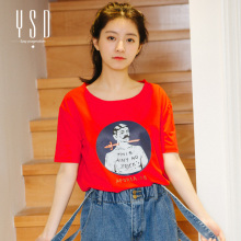 衣尚道春新款短袖T恤女夏装印花韩版宽松圆领红T学生黑色潮牌外穿