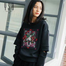 衣尚道复古套头卫衣春秋立体刺绣女潮太空棉宽松上衣外套女棒球服