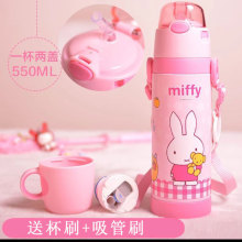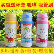 米菲吸管杯保温杯 儿童不锈钢水杯带手柄背带 宝宝水壶保温杯