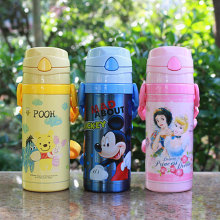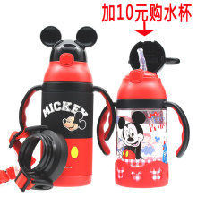 迪士尼保温杯吸管杯 儿童水杯喝水壶防漏背带男女 学生宝宝保温杯