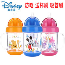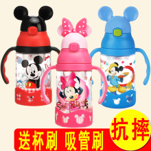 迪士尼儿童水杯宝宝吸管杯防摔喝水杯子带手柄学饮杯幼儿园水壶夏