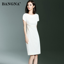 邦娜原创2017夏季新款女装白色短袖修身连衣裙时尚气质简约短裙子