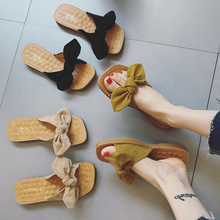 拖鞋女夏季2017新款韩版时尚外穿蝴蝶结牛筋软底一字型方头凉拖鞋