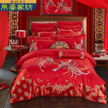 全棉婚庆四件套大红刺绣 新婚贡缎1.8m床上纯棉六件八件套多件套
