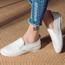2017春秋季韩版女小白鞋真皮浅口平底单鞋懒人鞋休闲乐福鞋学生鞋
