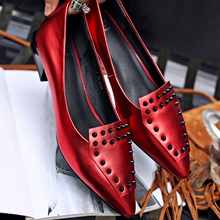 2017春季新款单鞋真皮低帮鞋女尖头浅口低跟鞋时尚铆钉百搭女鞋子