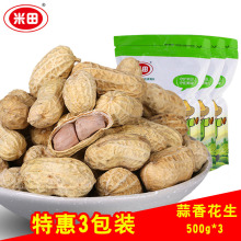 米田 龙岩花生500g*3袋 蒜香咸酥红泥3种口味带壳咸干花生