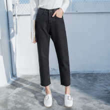 春夏女装宽松直筒牛仔九分裤 毛边流苏裤脚水桶裤 时尚显瘦韩版裤