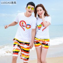 洛高送沙滩鞋2016情侣装夏情侣沙滩旅游男女短袖t恤短裤运动套装