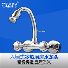 入墙式龙头挂墙式 阳台 厨房菜盆双孔混水阀 面盆全铜冷热水龙头