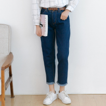 光影纪简约文艺清新纯色百搭流苏毛边八分休闲牛仔裤女牛仔哈伦裤