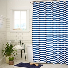 宜家蓝白条纹加厚涤纶欧式浴帘浴室防水防霉洗澡帘子遮光隔断窗帘