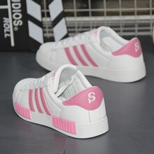 时尚小白鞋女透气厚底跑步鞋板鞋韩版百搭魔术贴学生运动鞋休闲鞋
