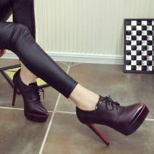 2017秋冬欧美性感夜店单靴前系带尖头单鞋防水台细跟高跟鞋裸靴女