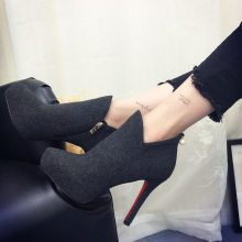 欧洲站2016秋冬新款靴子绒面高跟细跟防水台短靴女鞋尖头马靴裸靴