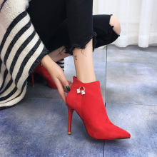 秋冬季新款红色性感女士高跟马丁靴细跟短靴尖头高跟鞋新娘鞋婚鞋