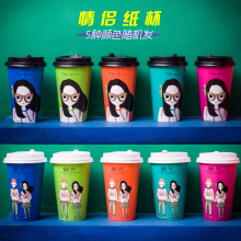 新品 情侣纸杯 16盎司500毫升 一次性奶茶纸杯/咖啡纸杯