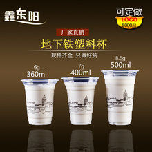 360/400/500ML一次性塑料杯地下铁加厚杯奶茶塑料彩印冷饮1000只