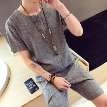 夏季日系复古套装雪花短袖t恤男韩版潮休闲男士潮流冰丝男装一套