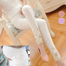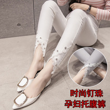 孕妇打底裤春夏时尚蕾丝钉珠高腰小脚孕妇铅笔裤大码显瘦托腹长裤