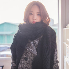 韩国新款加厚毛线围巾女冬季披肩两用超长粗毛线纯色女士情侣围脖