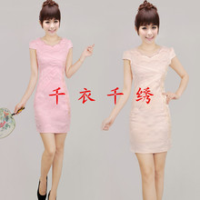 2017夏季新款女装修身显瘦性感精美复合蕾丝旗袍裙