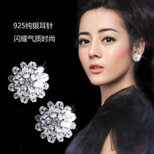 韩国超闪水钻锆石花朵大气耳环防过敏气质个性纯银耳钉女耳饰品