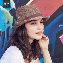 真享2016夏季韩版卷边遮阳帽子沙滩帽女英伦时尚镂空小礼帽潮镶钻