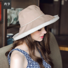 帽子女士夏韩版条纹旅游度假防晒遮阳布帽盆帽可折叠造型渔夫帽子