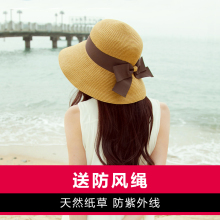 海边防晒草帽女夏可折叠沙滩帽大沿帽遮阳帽海滩度假旅游太阳帽子