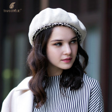 真享秋冬保暖英伦风女士小香风织带羊毛贝雷帽休闲出游时装帽
