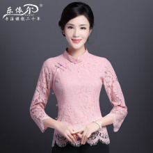 改良蕾丝旗袍上衣中袖民国风女装套装复古唐装春夏大码妈妈装套装