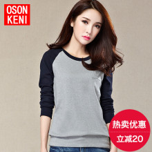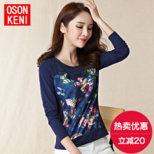 欧尚珂妮2017打底衫女春新款拼接印花圆领套头图案长袖T恤女2263