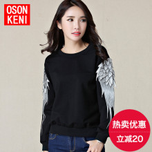 欧尚珂妮羽毛翅膀春季新款套头欧美宽松鹤影刺绣大码卫衣绒衫女