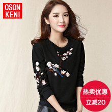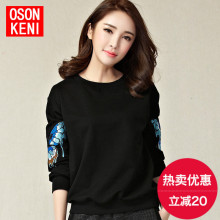 欧尚珂妮春季新款套头宽松长袖外套女装大码绣花休闲圆领卫衣女