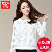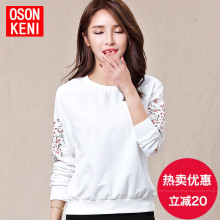 欧尚珂妮蕾丝衫春装女神白色长袖圆领卫衣新衣蕾丝衫打底衫女2231