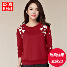 欧尚珂妮2017春装新款卫衣女梅花刺绣时尚休闲圆领套头宽松女装