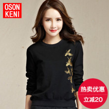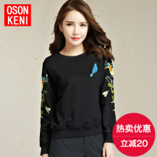 欧尚珂妮2017春装女装新品刺绣长袖宽松版型收腰套头卫衣女春